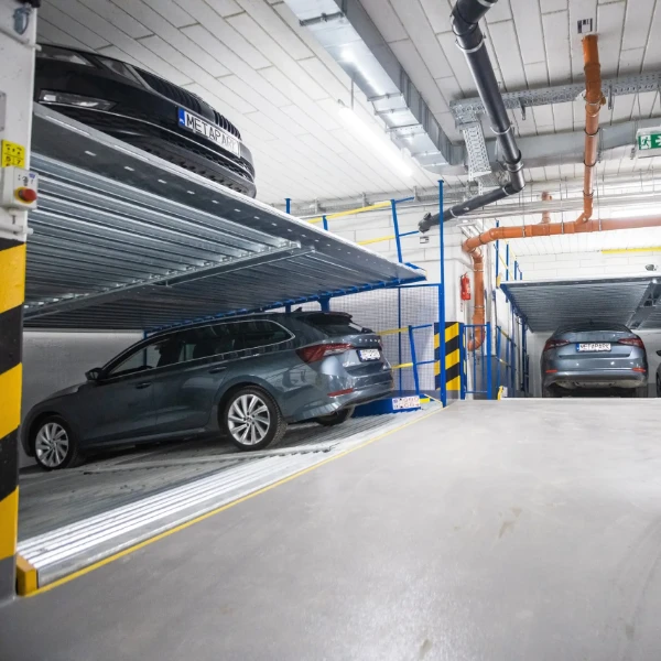 Instalacja niezależnych platform parkingowych w inwestycji przy ul. Płużnickiej w Warszawie.