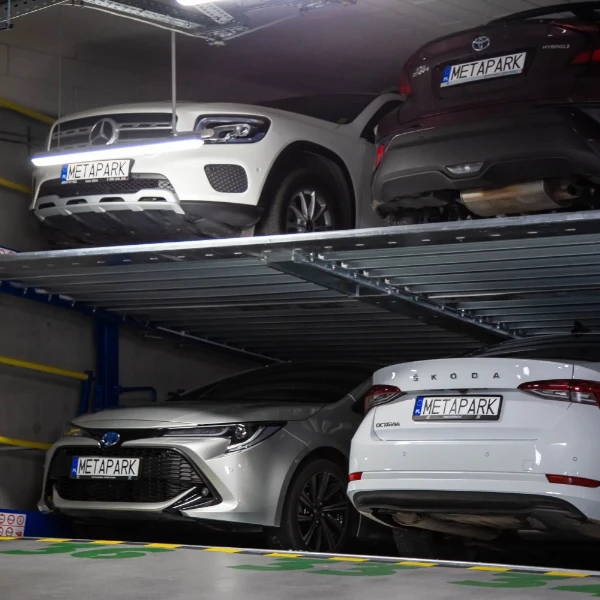 - Dwa razy więcej miejsc parkingowych na tej samej powierzchni garażu