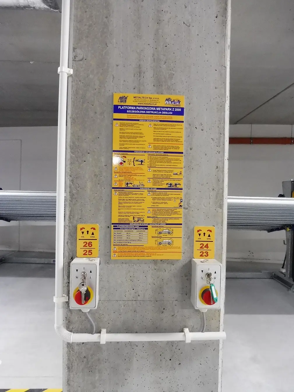 Każda z platform wyposażona została w indywidualne kasety sterujące zabezpieczone przed ewentualnym korzystaniem osób do tego nieuprawnionych.