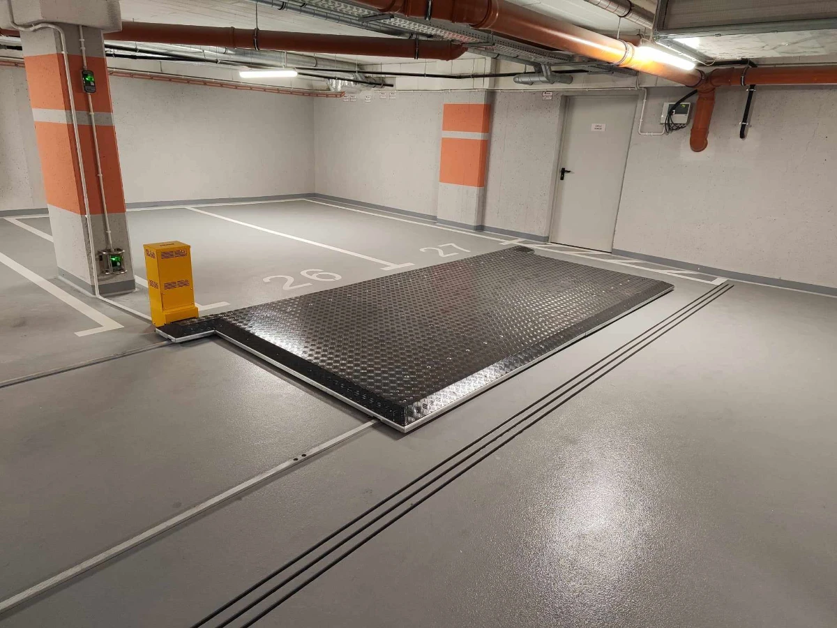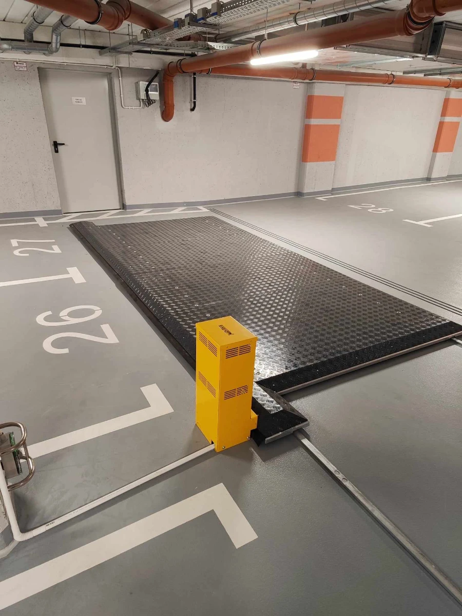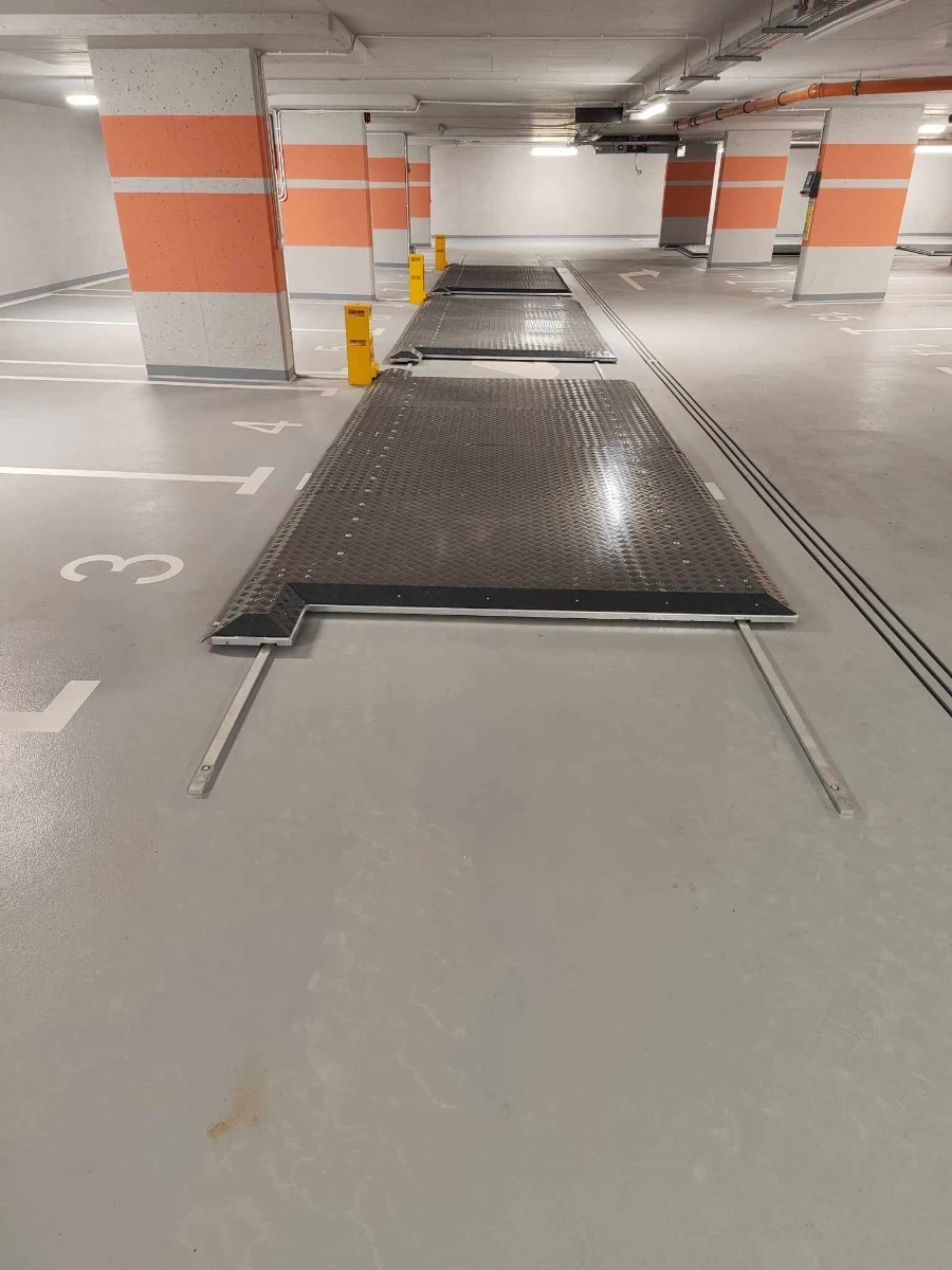 Dzięki pokryciu palety blachą ryflowaną uzyskano płaską i łatwą w eksploatacji powierzchnię miejsca parkingowego.