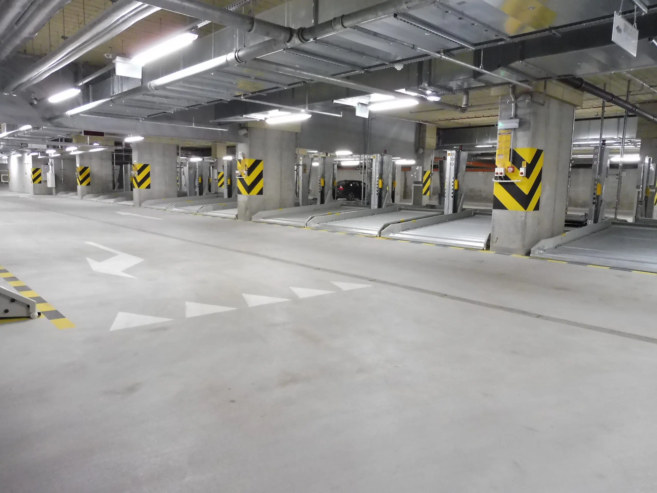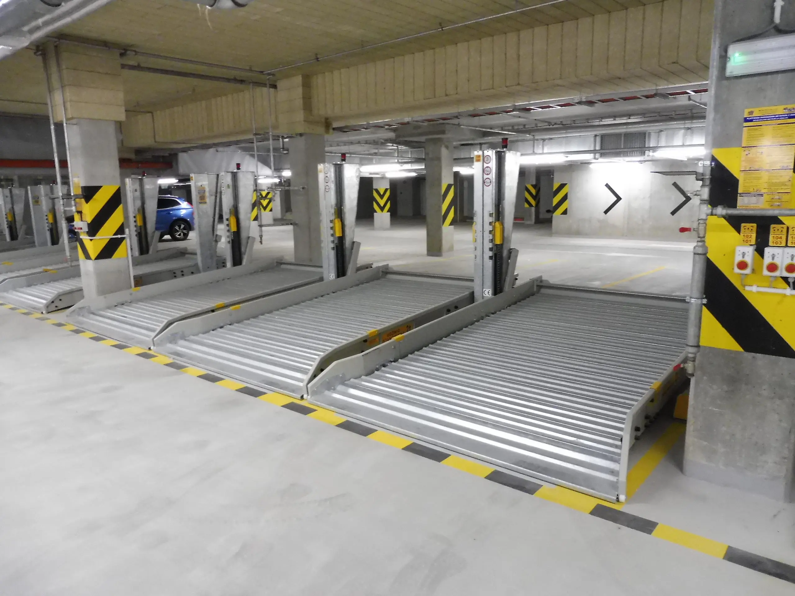 Designed to make it as easy as possible for users to park a car in the upper parking space.