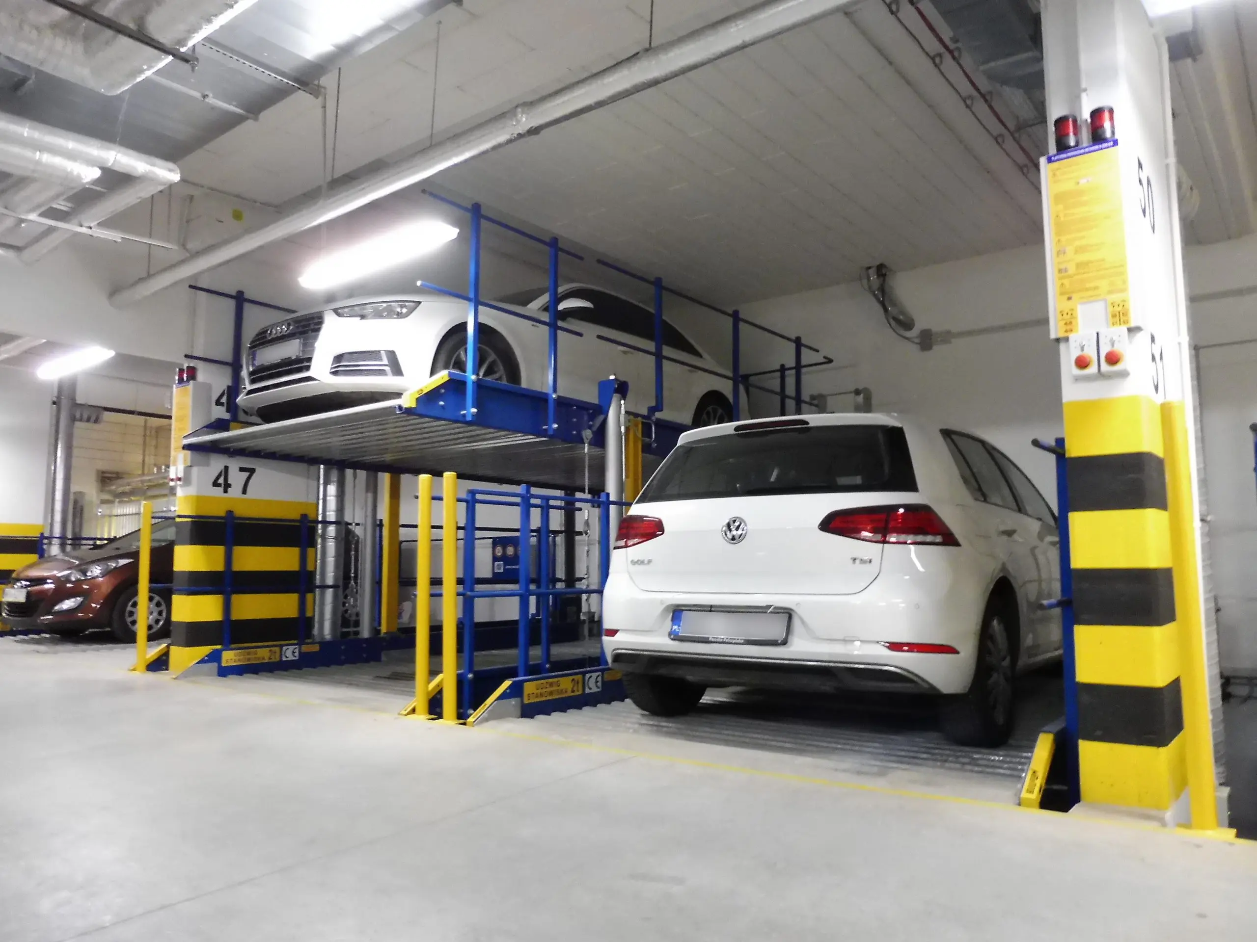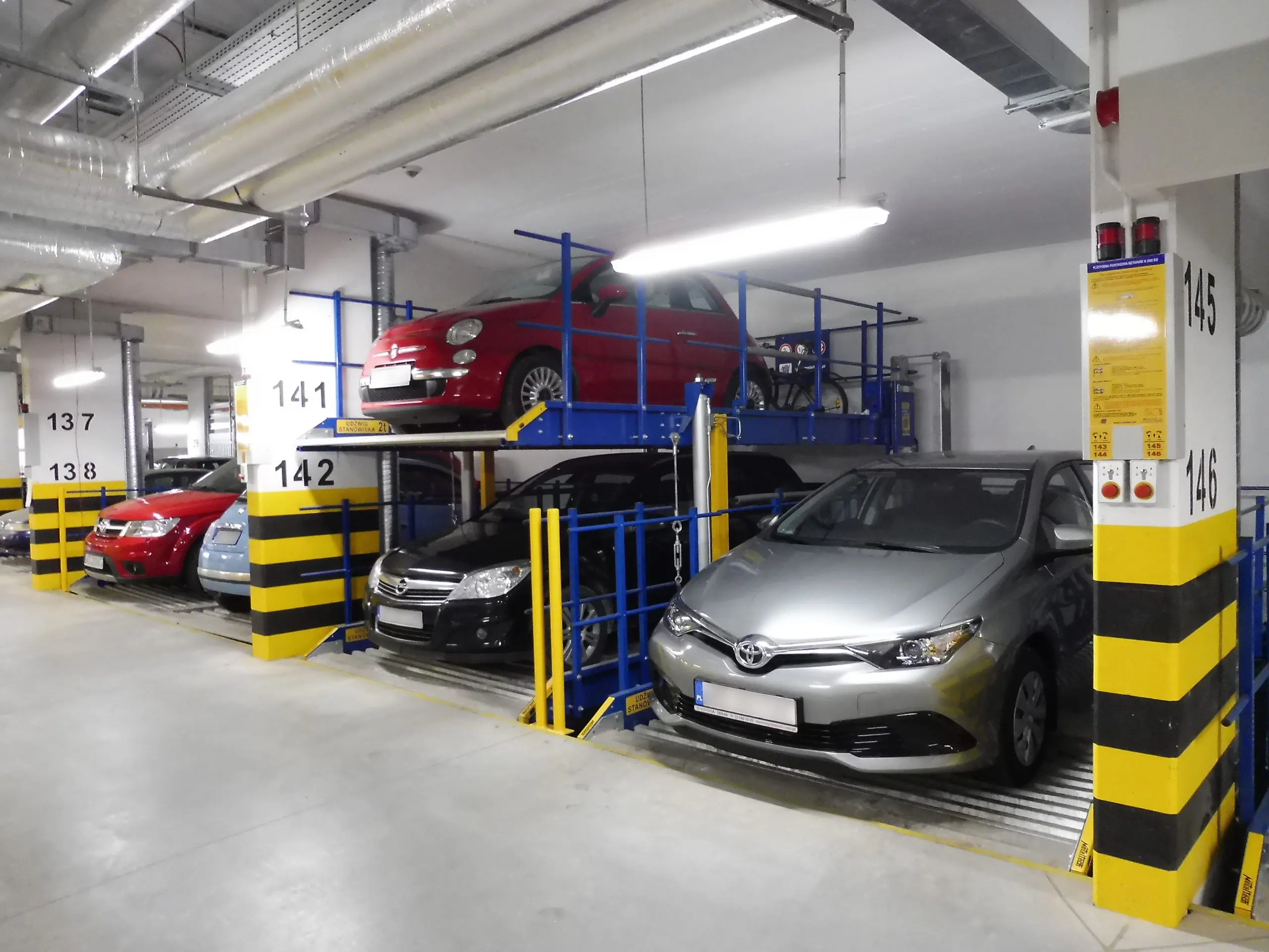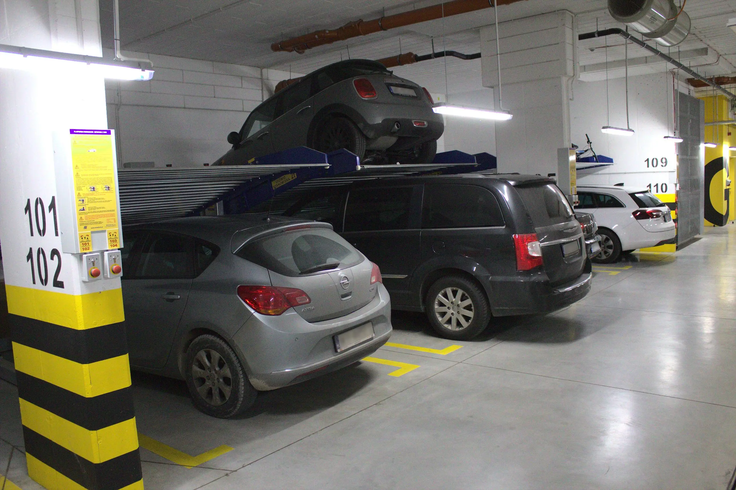 Installation of dependent and independent parking platforms at the Brzozowy Zakątek development in Warsaw.