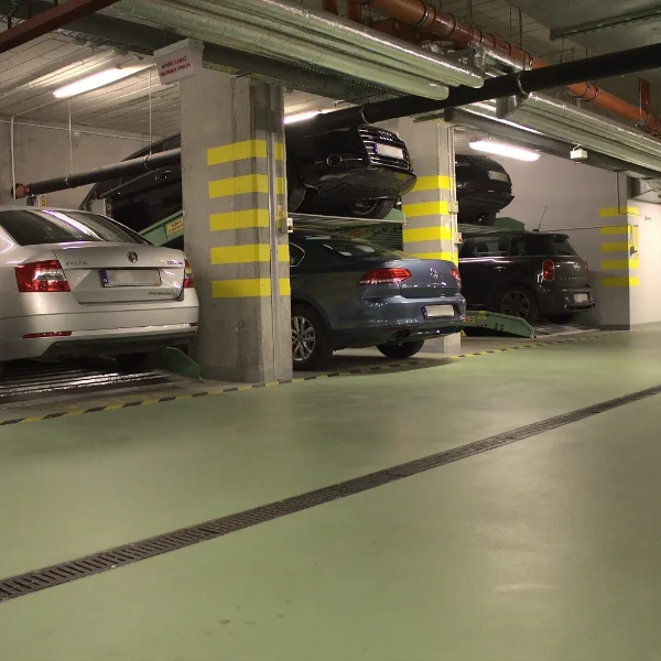 Installation of dependent parking platforms at the ZORA Wilanów development in Warsaw.