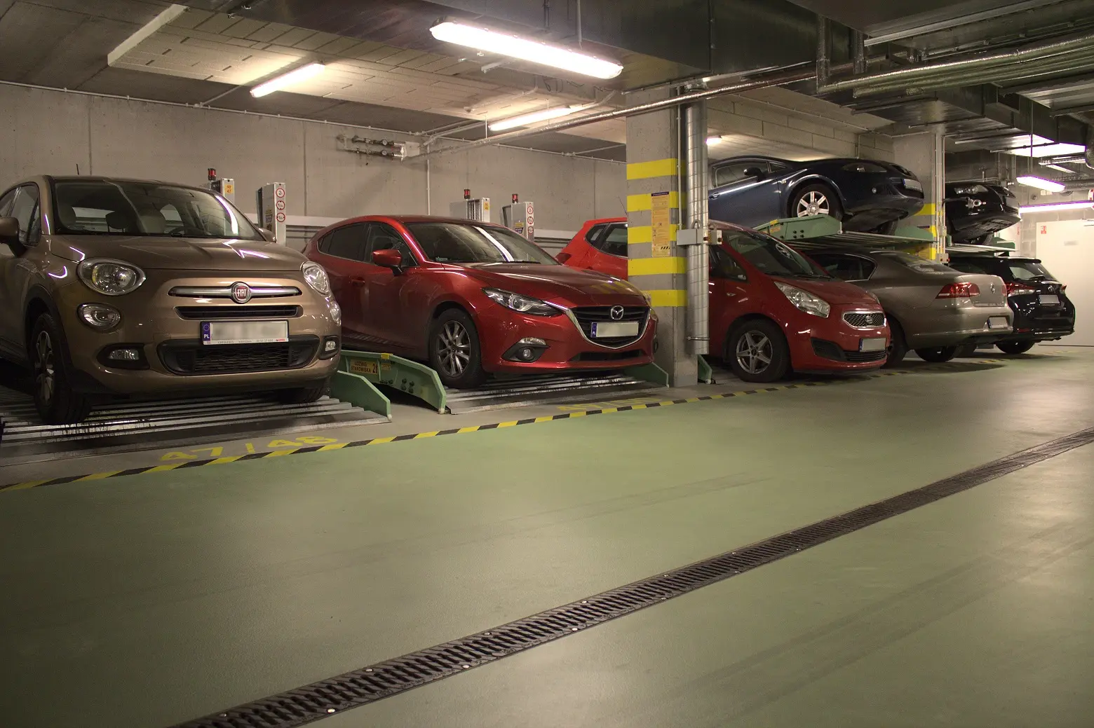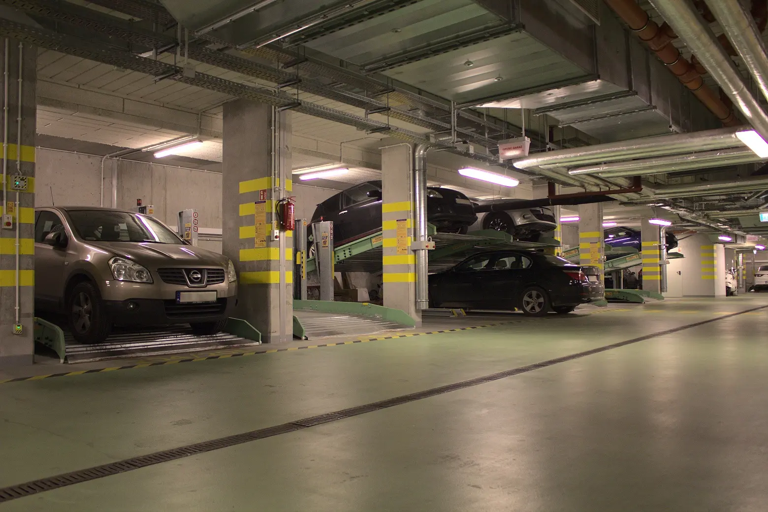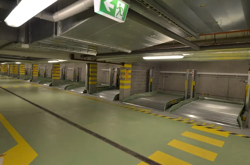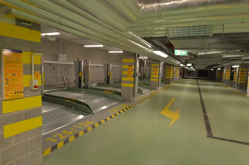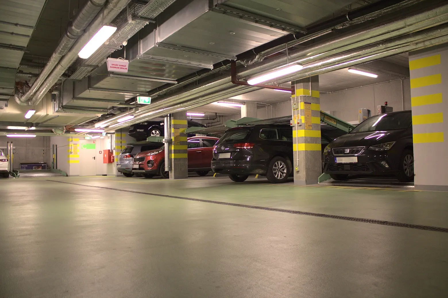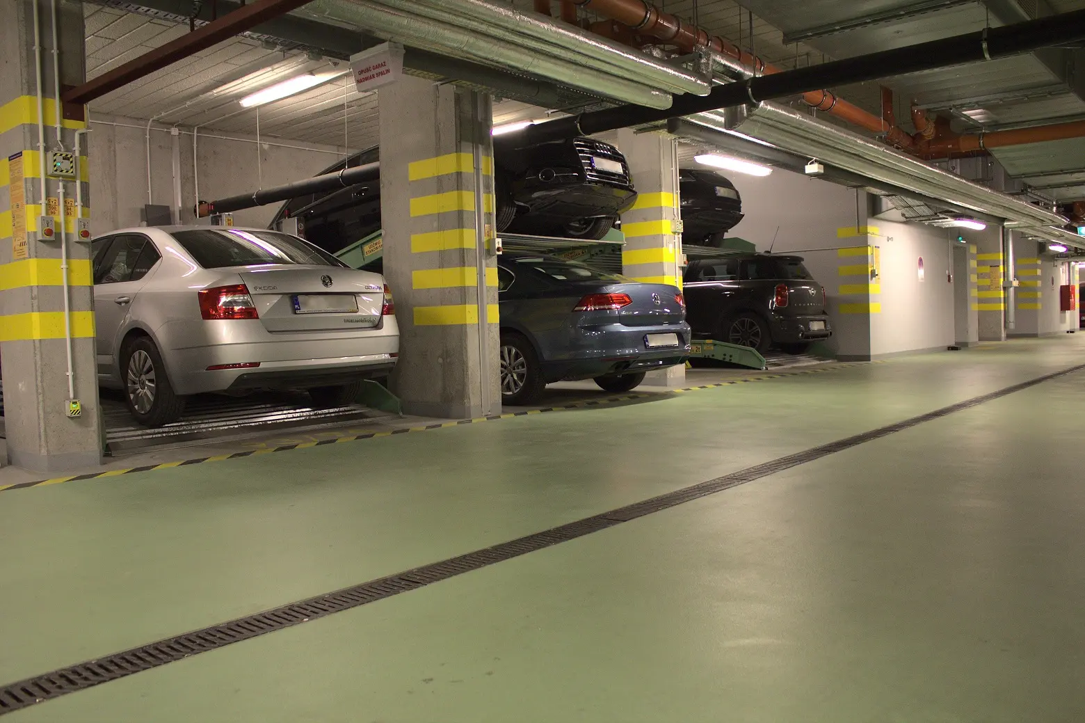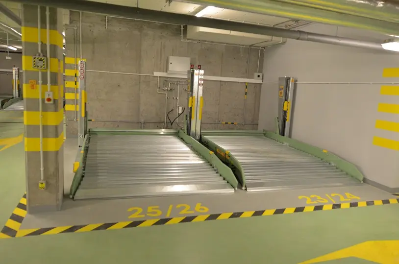 Installation of dependent parking platforms at the ZORA Wilanów development in Warsaw.