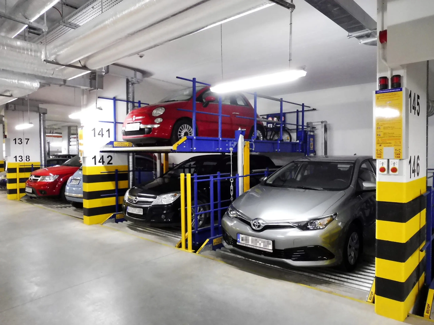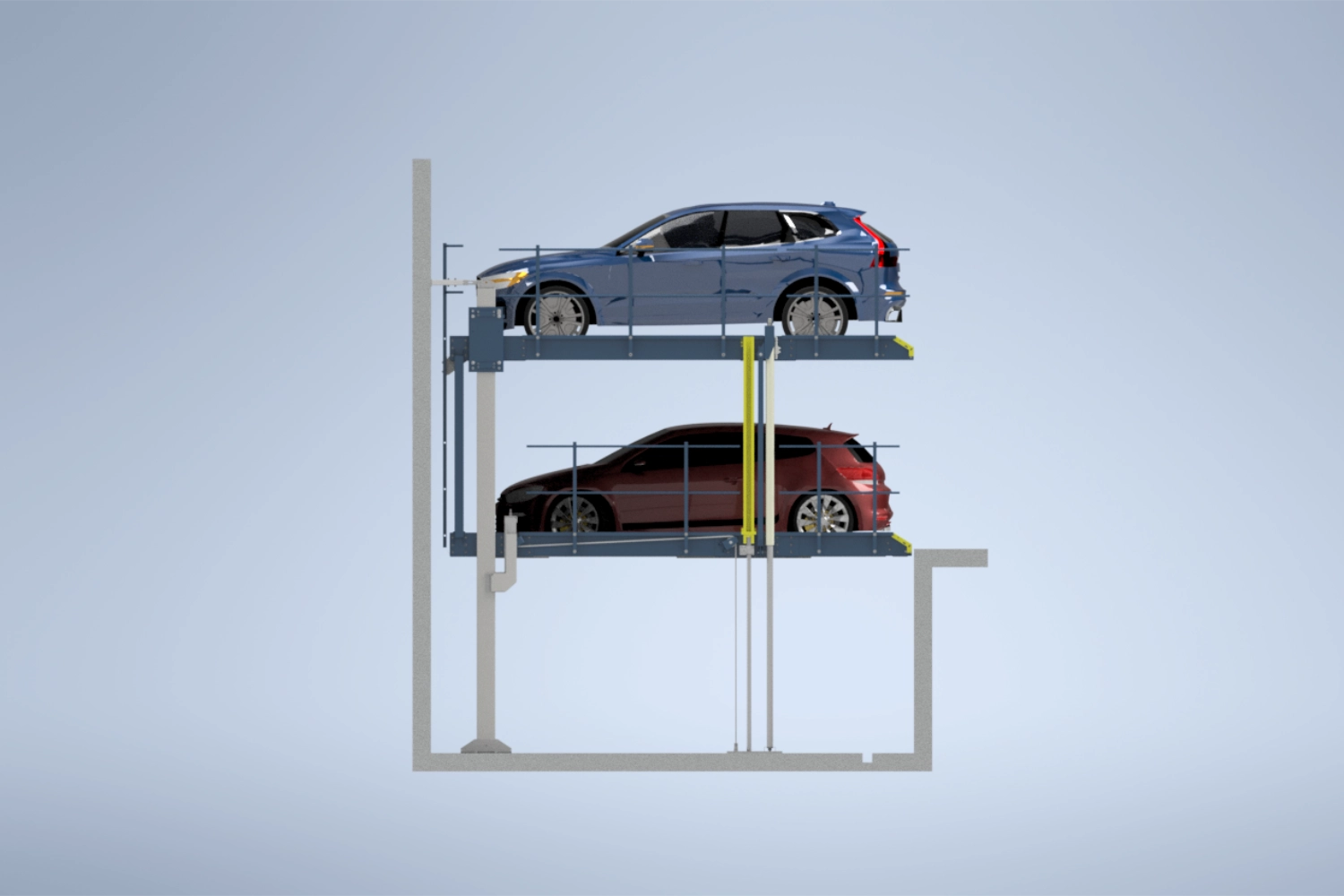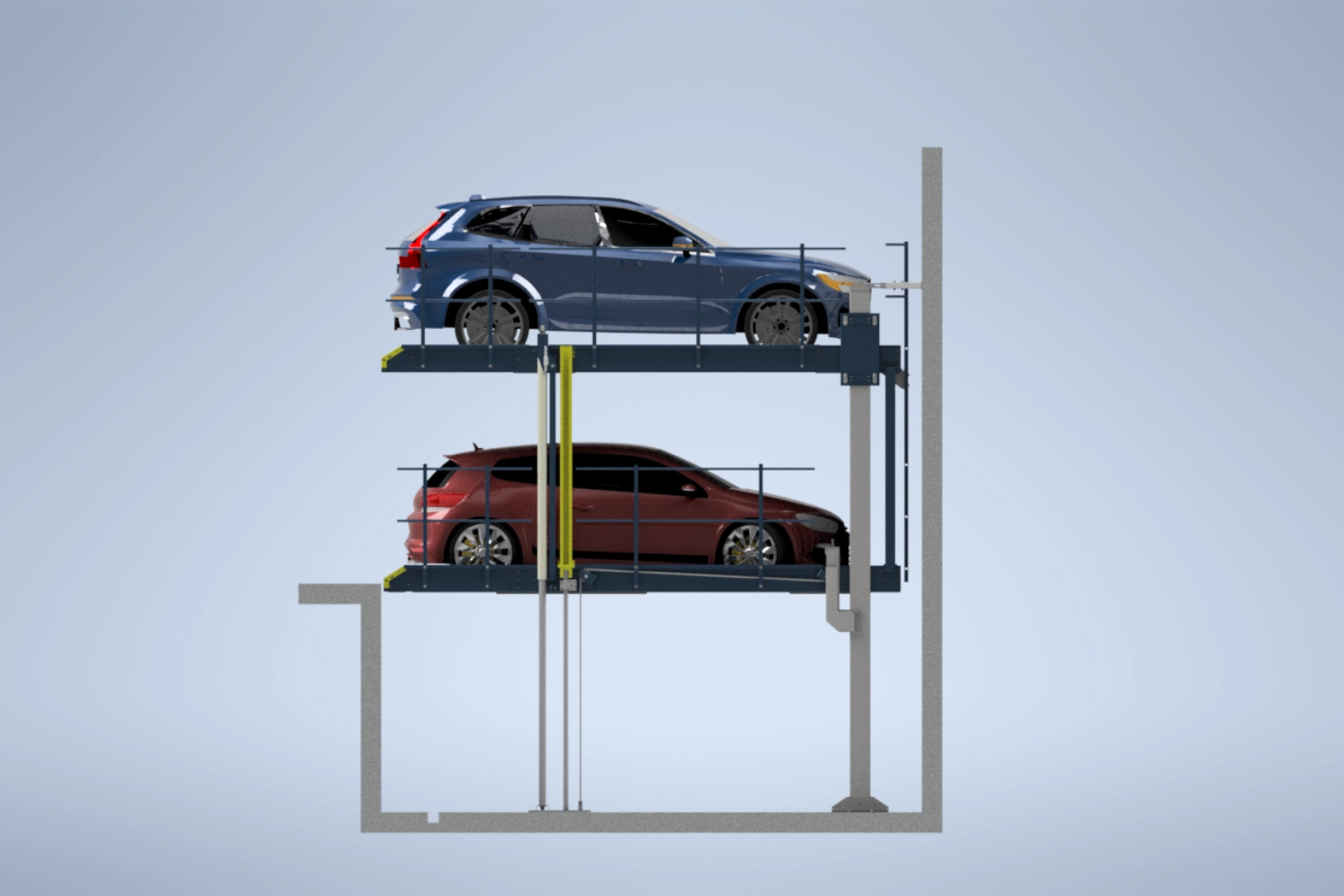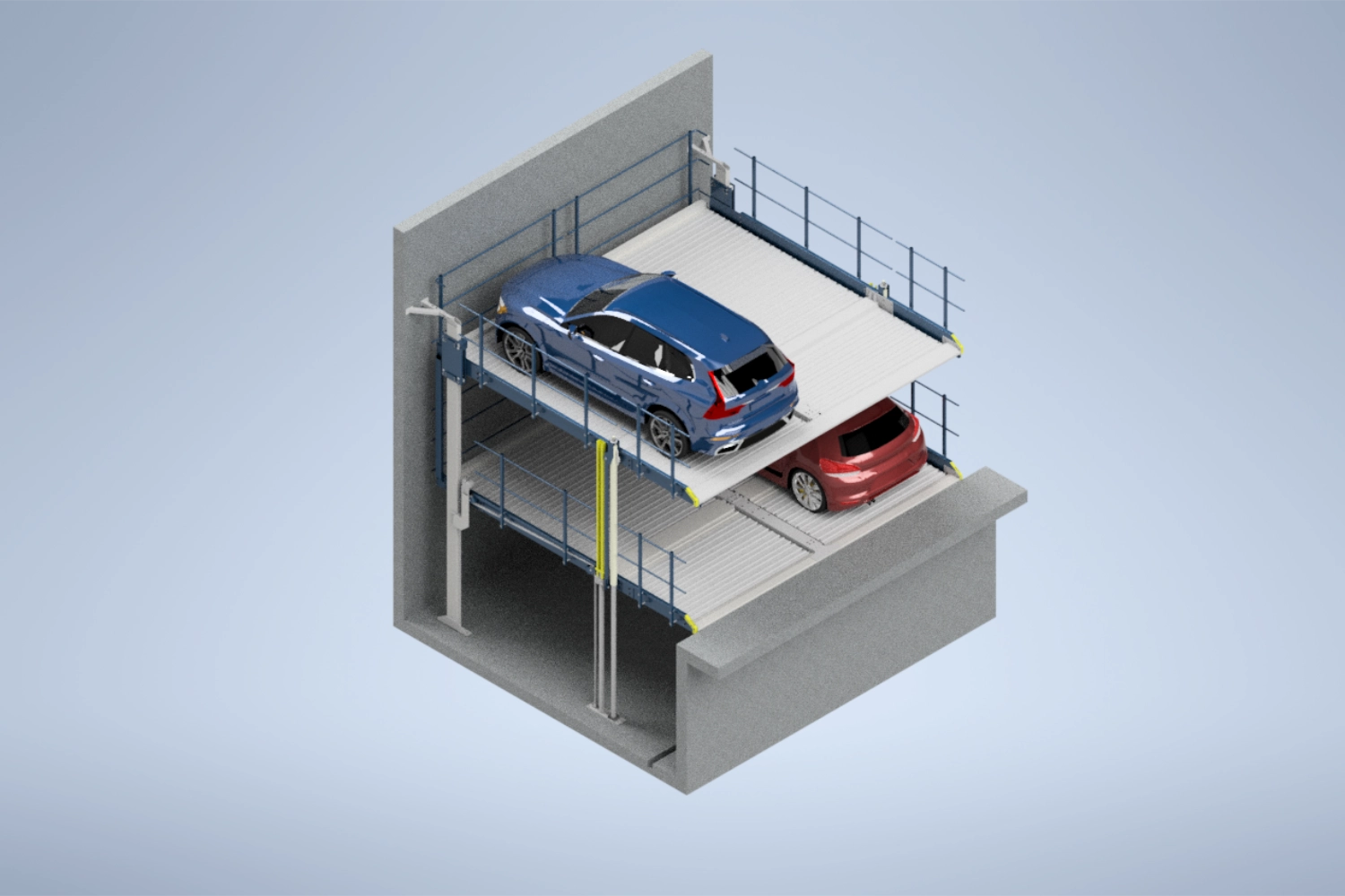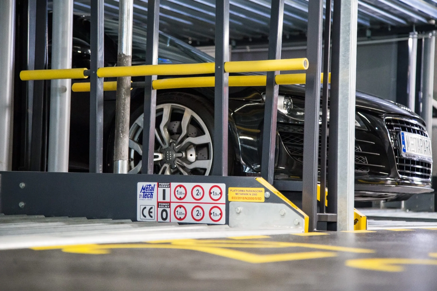 The platform is equipped with railings, individually designed for both upper and lower parking spaces, additionally fitted with protective padding to safeguard the driver’s door.