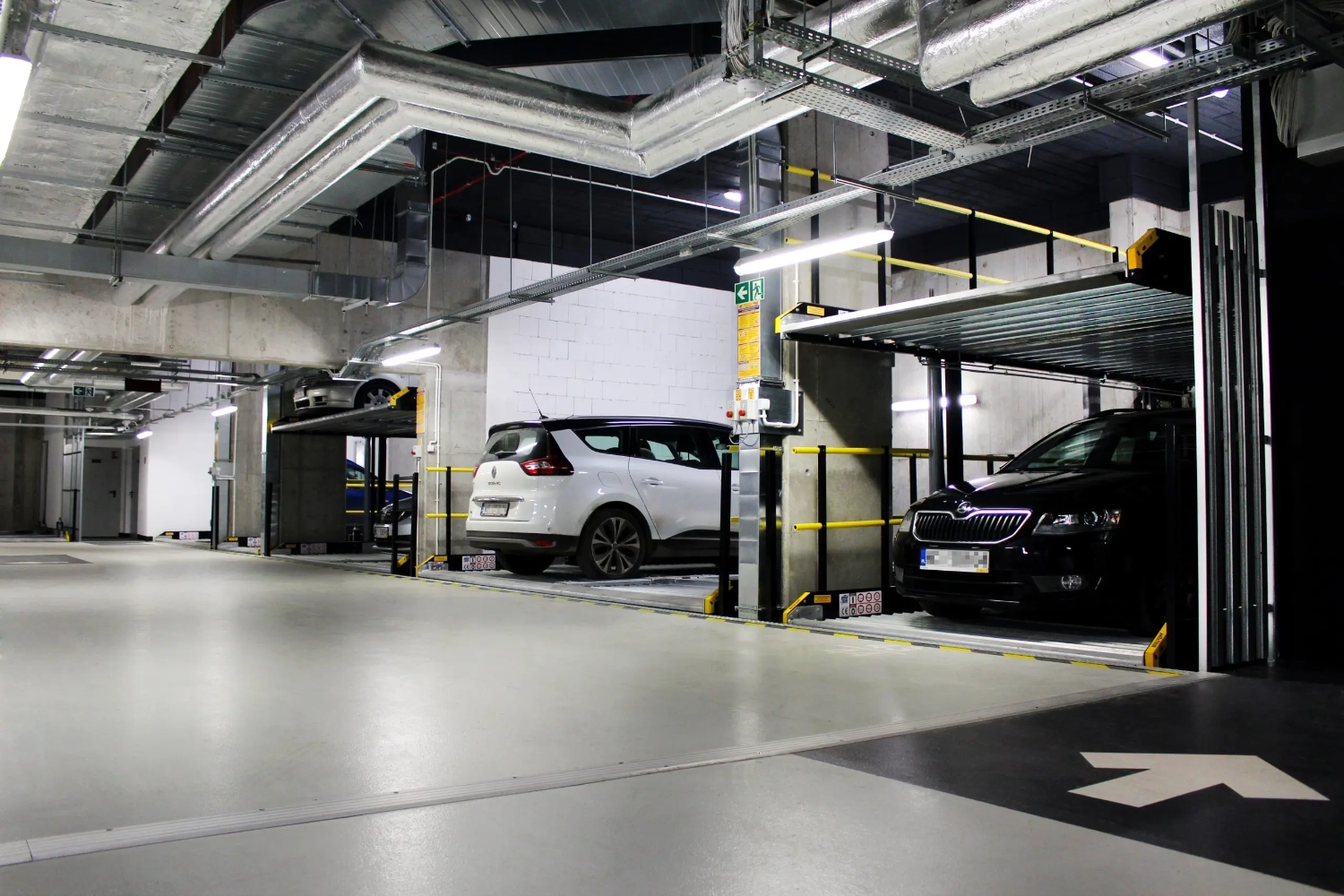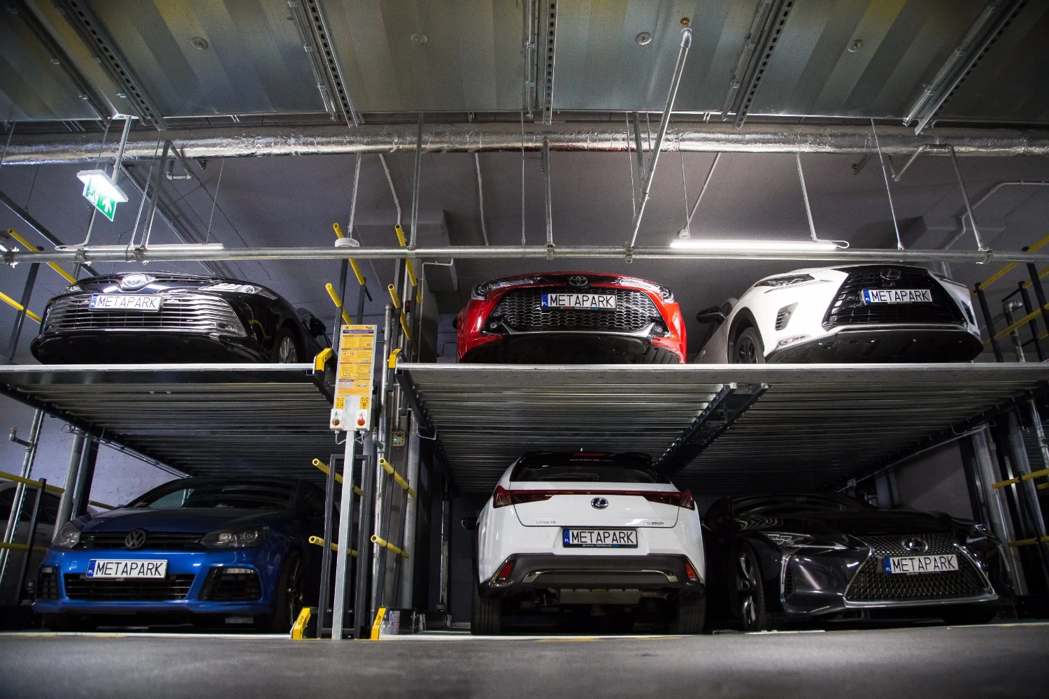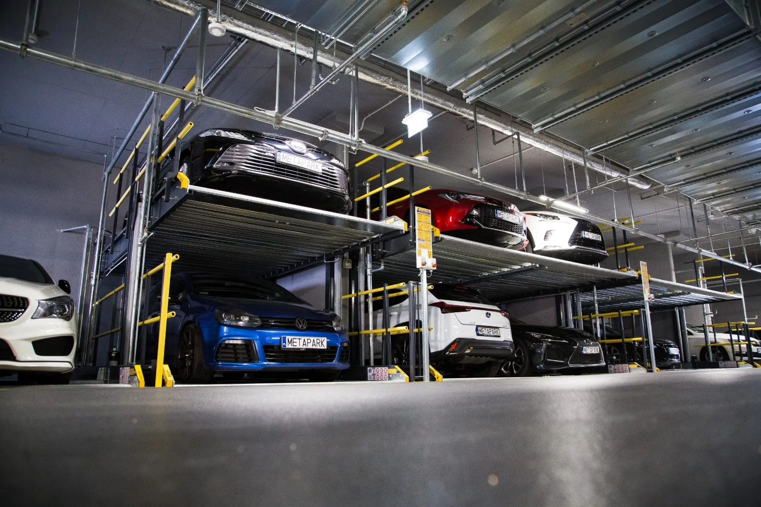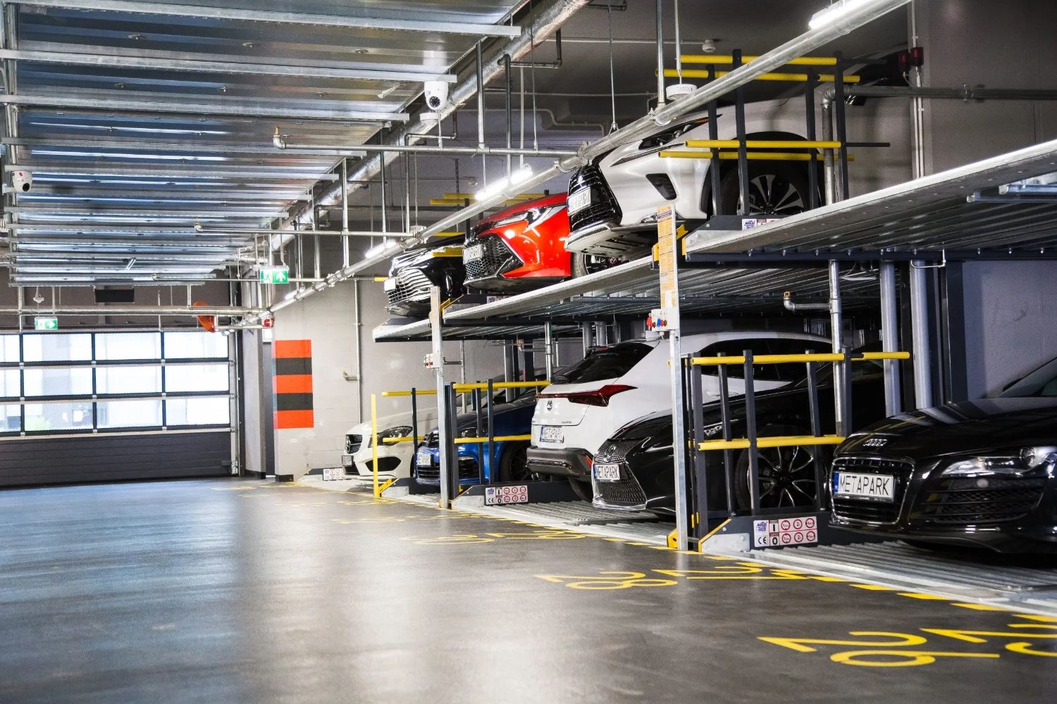 The platform is equipped with railings, individually designed for both upper and lower parking spaces, additionally fitted with protective padding to safeguard the driver’s door.