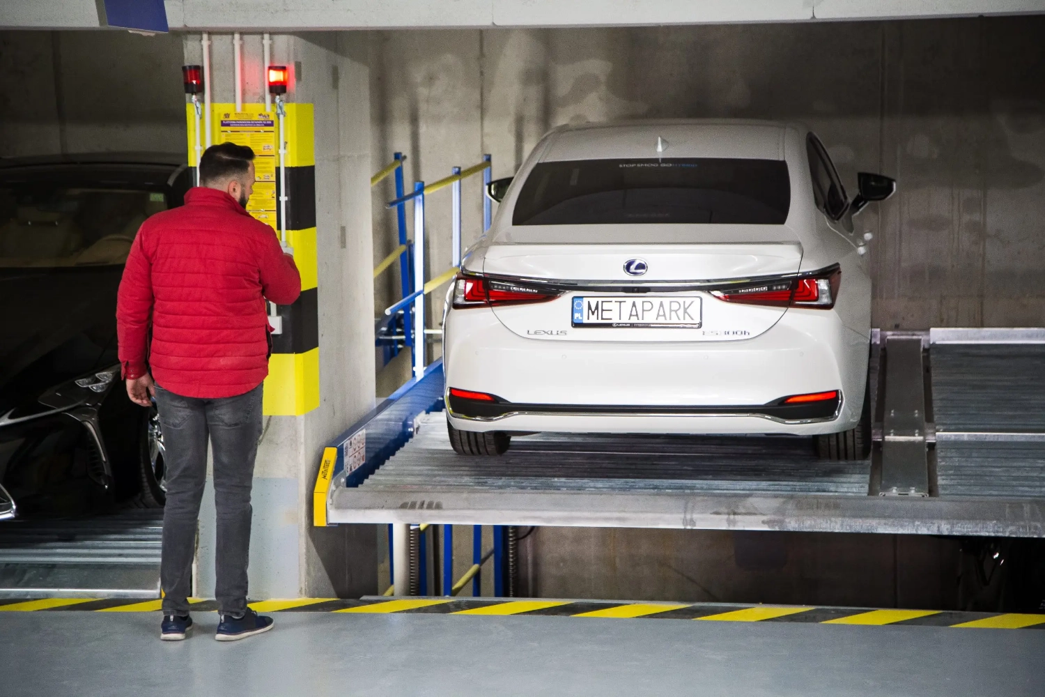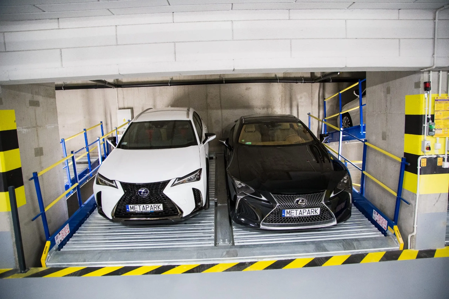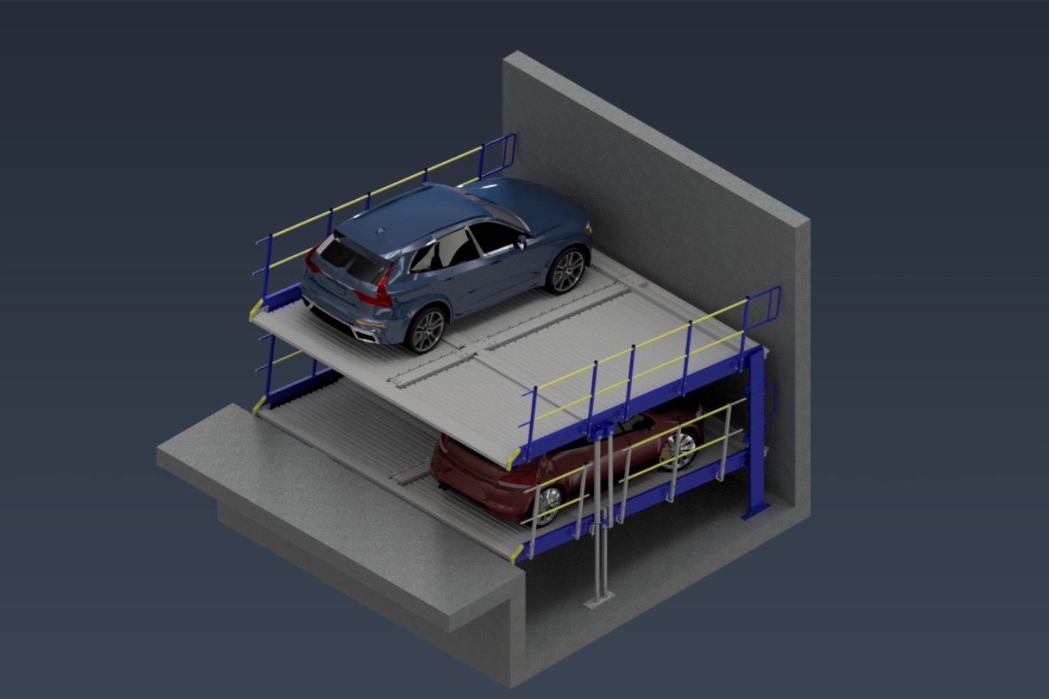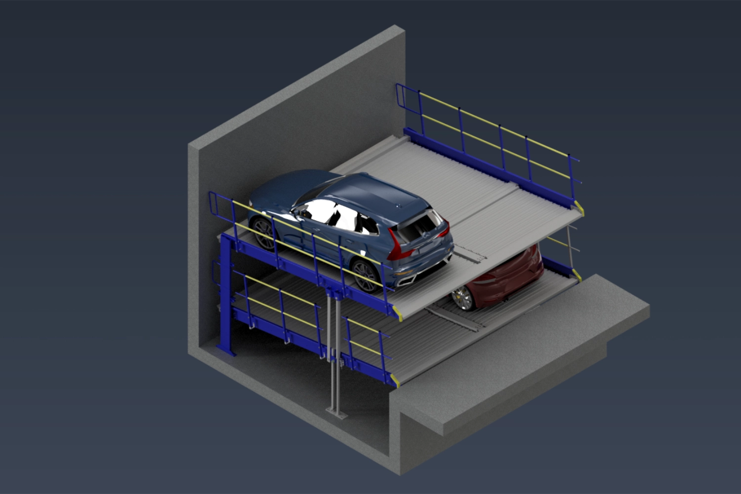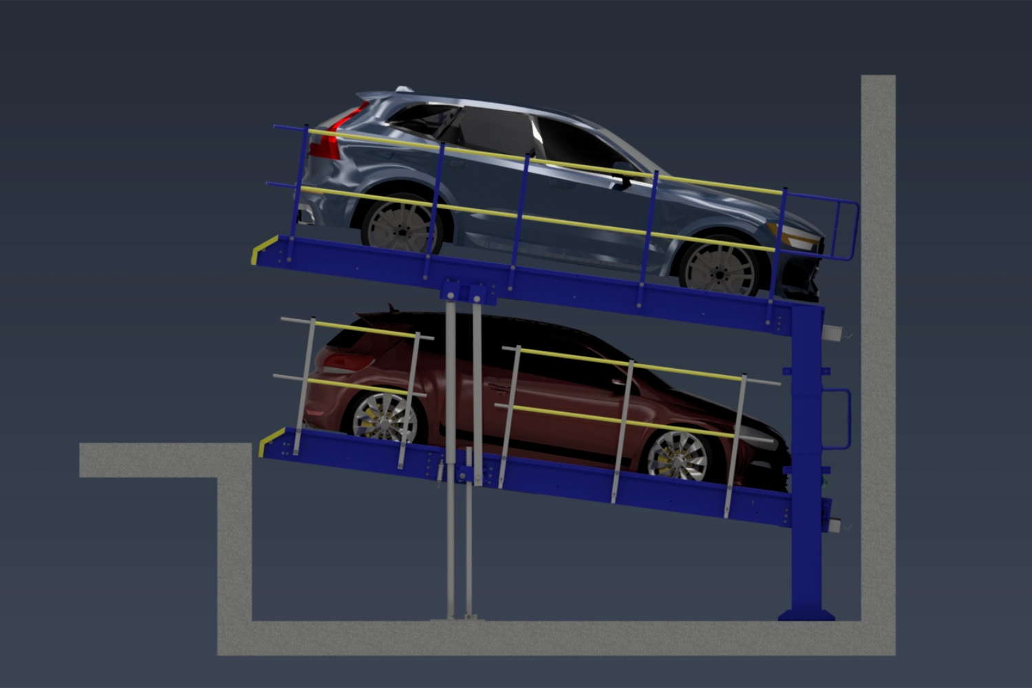 The platform is equipped with railings, individually designed for both upper and lower parking spaces, additionally fitted with protective padding to safeguard the driver’s door.